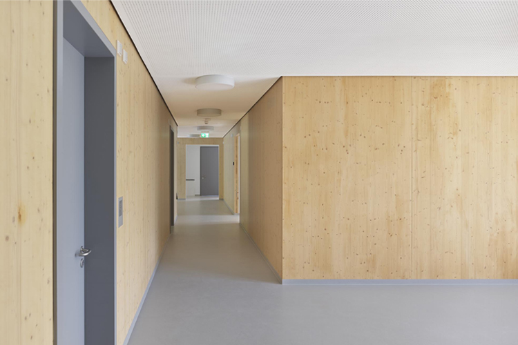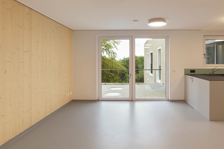 Trotz engem Kostenrahmen wurde viel Wert auf Nachhaltigkeit gelegt. Bei diesem Holzbau mit Gründächern, Luft-Luft-Wärmepumpen und Photovoltaikanlage sind rund 287 Tonnen CO₂ in den Holzkonstruktionen gespeichert – zusätzlich wurden im Vergleich zu einer Stahlbetonbauweise etwa 150 Tonnen CO₂ eingespart. Das Gebäude ersetzt das ehemalige, nicht barrierefreie Freizeitheim und erfüllt nun die Anforderungen der Landesheimbauverordnung.