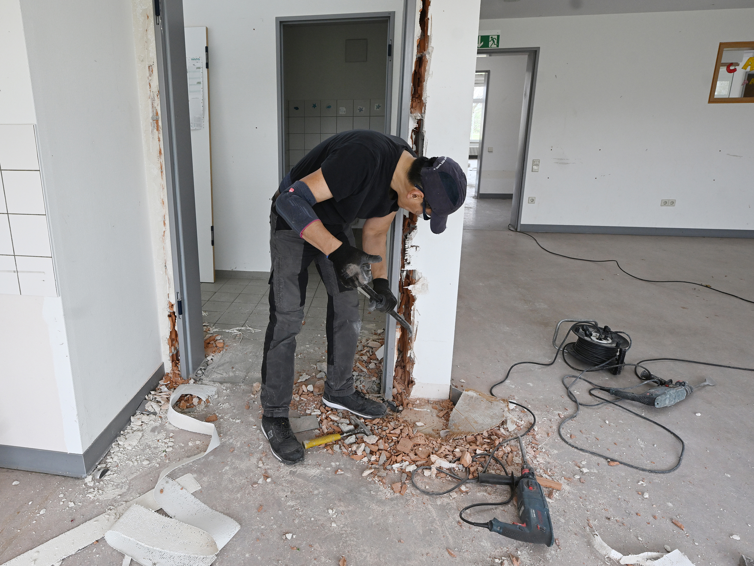 Re-Use Aktion an der Hangweide. Material soll später in der Böckingerstaße wieder eingebaut werden. Bild: IBA’27 / Franziska Kraufmann